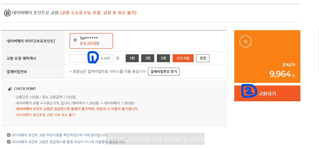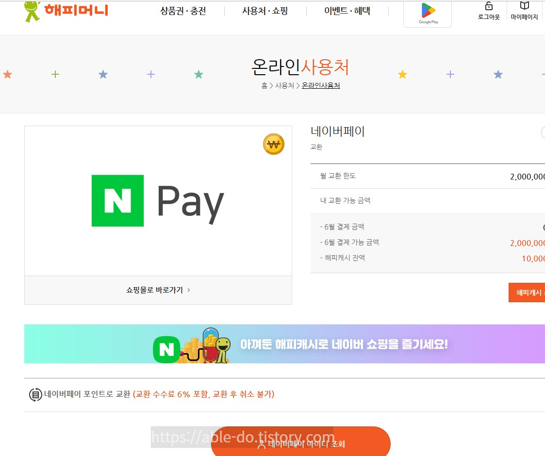 해피머니를 네이버페이 포인트로 전환하기